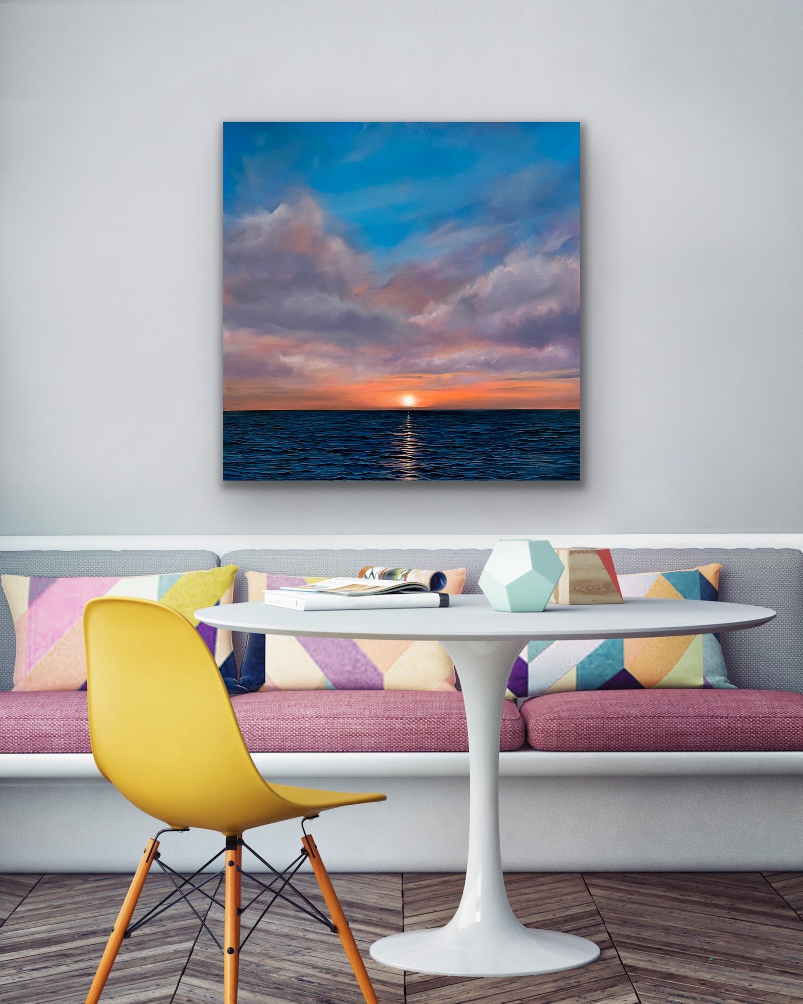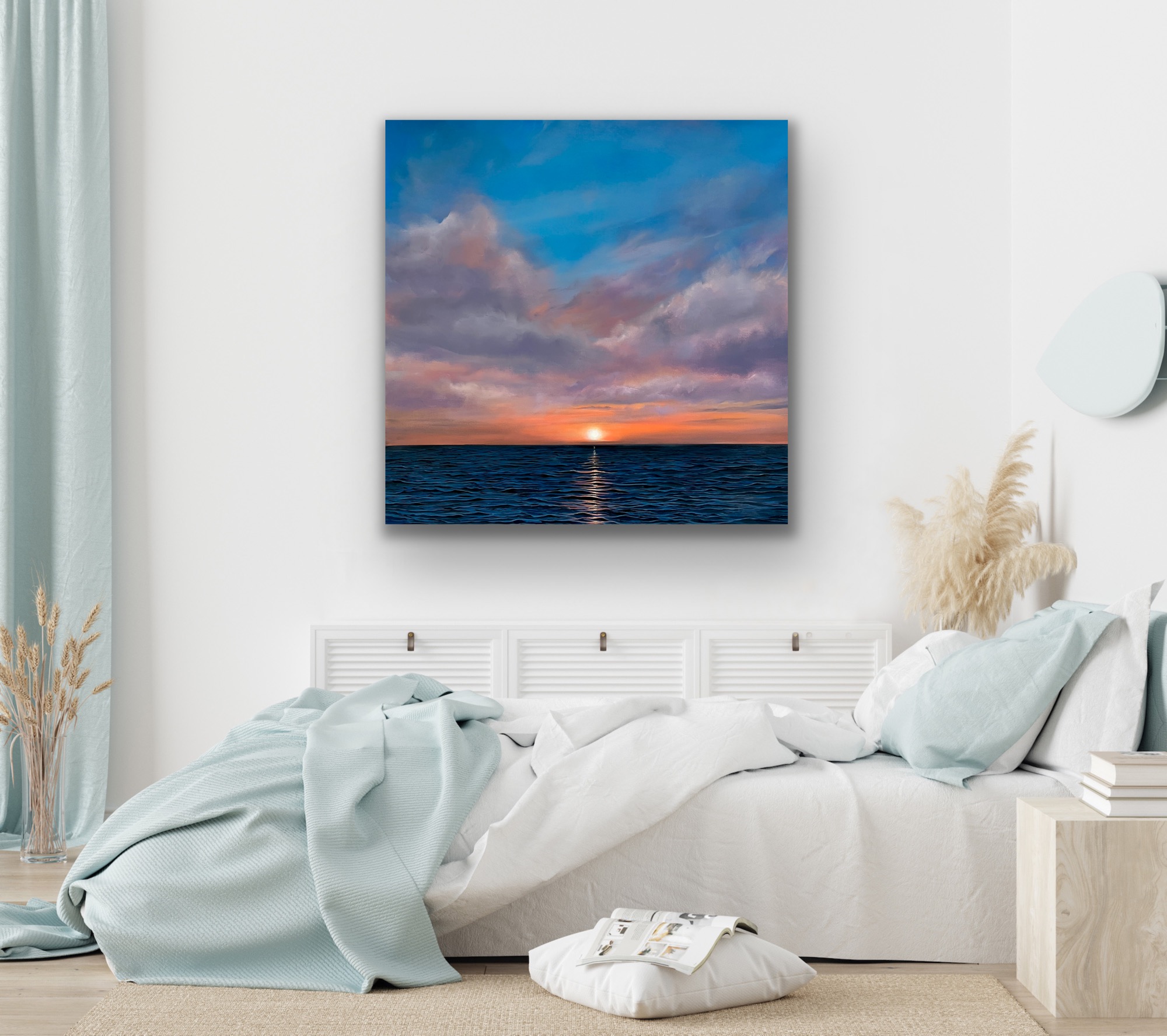 An original oil painting on stretched cotton canvas sized 50cm x 50cm.